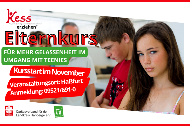 Kess-erziehen mit mehr Freude und weniger Stress ab 18.11.2023 in Haßfurt, Anmeldung ab sofort möglich Die Caritas-Beratungsstelle für Familien –Kinder, Jugendliche und Eltern– bietet ab 18.11.2023 wieder den inzwischen bewährten...