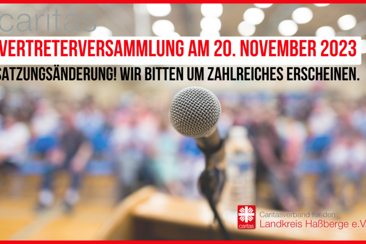 Satzungsreform im Caritasverband Haßberge e.V.: Bitte um Teilnahme aller stimmberechtigten Vertreterinnen und Vertreter! Die diesjährige ordentliche Vertreterversammlung des Caritasverbandes für den Landkreis Haßberge e.V. findet am Montag, 20.11., um 19:30...