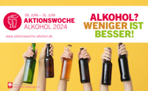 Die diesjährige Aktionswoche Alkohol der Deutschen Hauptstelle für Suchtfragen e.V. vom 08. – 16. Juni 2024 rückt die Auswirkungen von Alkoholkonsum auf Dritte in den Mittelpunkt. Machtlosigkeit, Überforderung und sich verändernde Beziehungen machen häufig auch das Umfeld von Alkoholerkrankten zu Betroffenen. Weitere Infos: www.aktionswoche-alkohol.de
