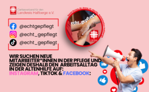 Wir freuen uns, Ihnen unseren neuen Social-Media-Auftritt „Echt gepflegt“ vorstellen zu dürfen! Auf Instagram, TikTok und Facebook geben wir authentische Einblicke in den Alltag unserer Pflegeeinrichtungen im Landkreis Haßberge – direkt, ehrlich und mit einem Augenzwinkern.