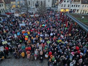 Initiatoren der Mahnwache waren der Freundeskreis Asyl Hofheim und der Verein Stolpersteine Haßberge, unterstützt von einem breiten Bündnis von Vereinen, Verbänden, Unternehmen, Parteien und weiteren Organisationen. Auch der Caritasverband für den Landkreis Haßberge e.V. unterstützte die Aktion. Dem Aufruf, sich für Demokratie einzusetzen, sind viele Menschen am 30.01. 2024 gefolgt. “Es war beeindruckend und vor allem ermutigend. Danke an alle, die teilgenommen haben!”, resümiert Anke Schäflein, Geschäftsführerin des Caritasverbandes für den Landkreis Haßberge e.V.